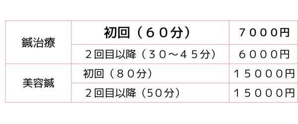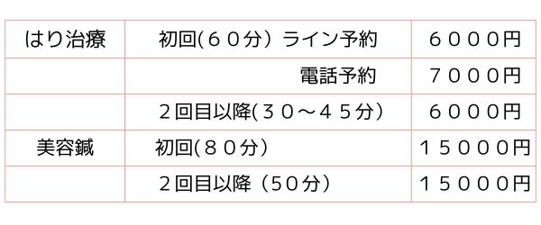 はりの数も3~7本と少なく、初回の施術時間は1時間、2回目以降は30~45分です。