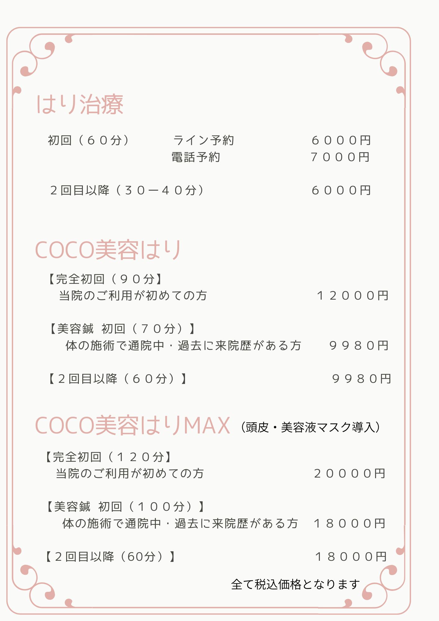 施術者が一人の為、施術中など、電話に出られない場合がございます。